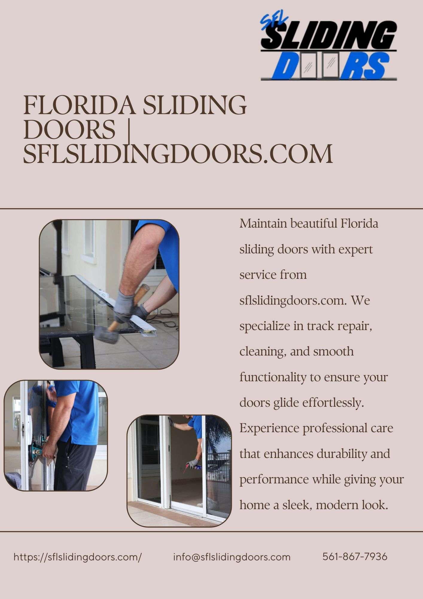 Maintain beautiful Florida sliding doors with expert service from sflslidingdoors.com. We specialize in track repair, cleaning, and smooth functionality to ensure your doors glide effortlessly. Experience professional care that enhances durability and performance while giving your home a sleek, modern look.